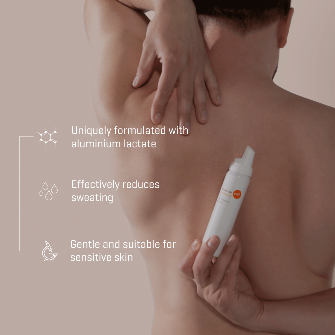 The effectiveness and tolerability of the Sweat-Off Roll-On was evaluated in a 6-week study. The results showed a highly significant reduction in sweat production and a significant increase in patient satisfaction. It was also observed that the skin barrier stabilised as the amount of sweat decreased.